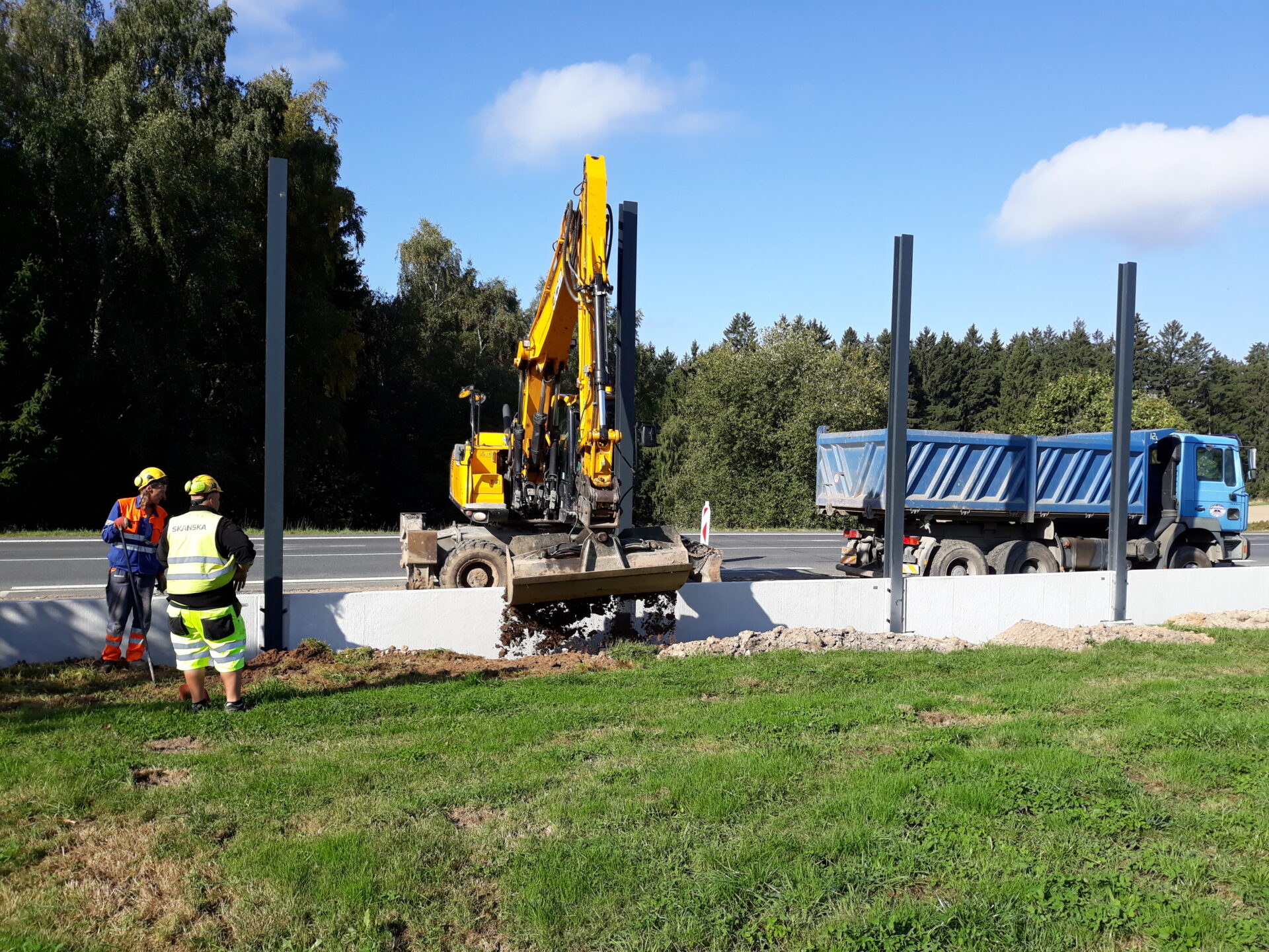 Na svém místě už jsou piloty, připravené k usazení jednotlivých panelů protihlukových stěn, které jsou ve spodní části opatřeny soklem. Současně se buduje systém odvodnění, a nakonec přijdou na řadu i nová svodidla.