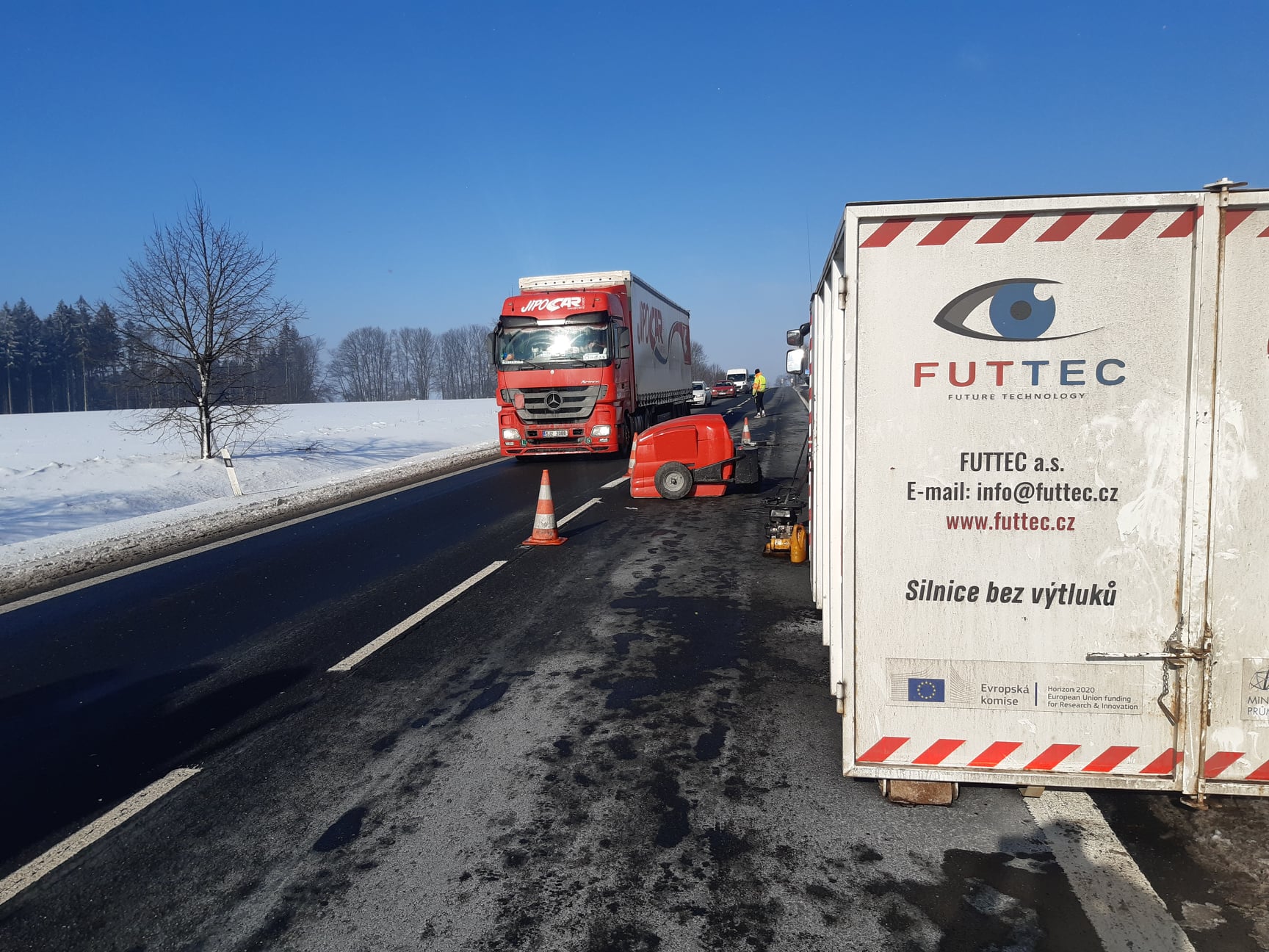 Konkrétním místem pro testování se staly silnice na Havlíčkobrodsku. Zde bylo opraveno celkem 55 výtluků, přičemž plocha toho největšího měřila 60 x 80 cm. Dva z výtluků byly opraveny na mostech, a to na silnici I/34 u České Bělé a v Michalovicích, bez toho, aby došlo k poškození hydroizolace.
