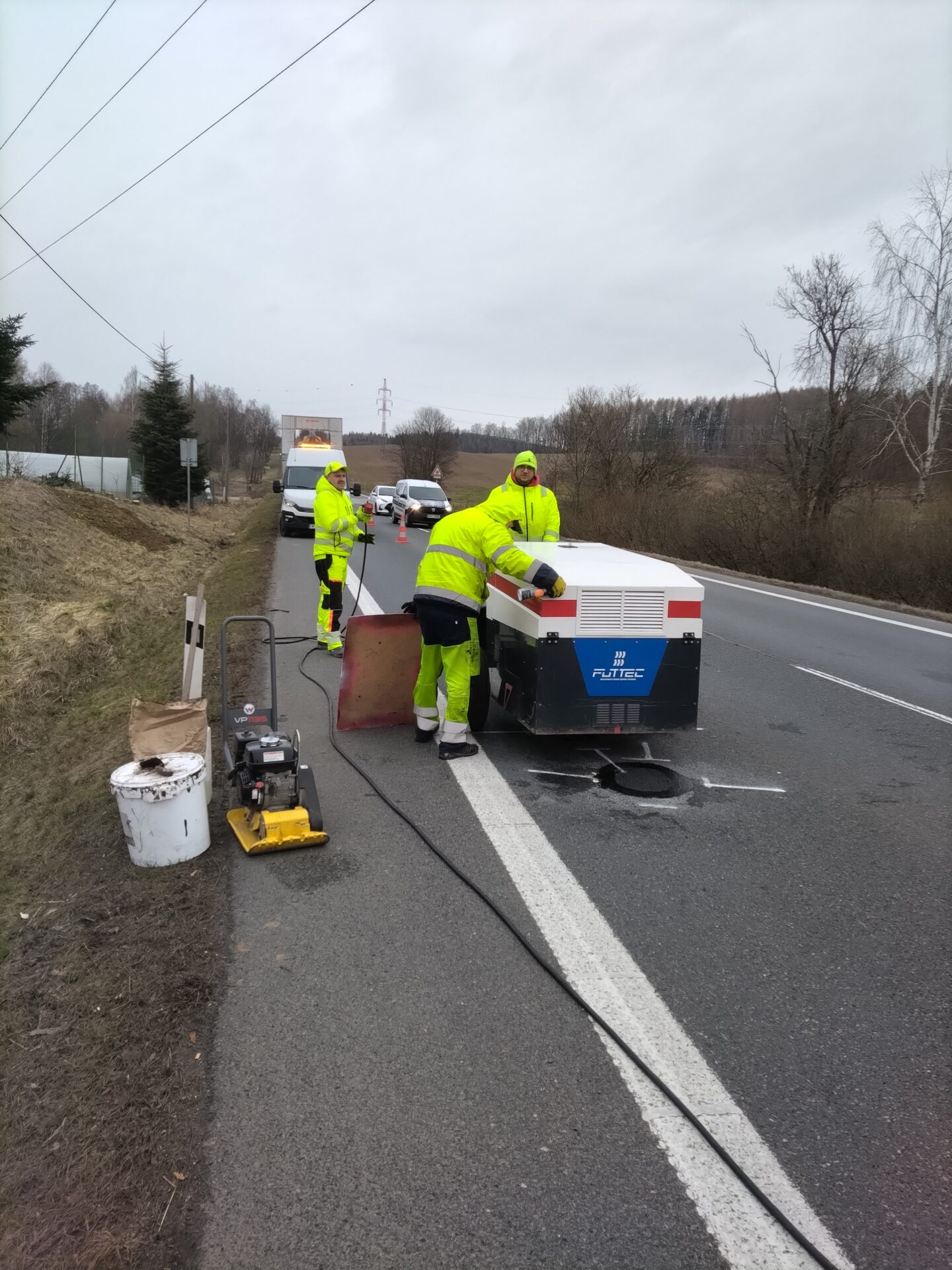 Letos poprvé jsme desítky výtluků na silnicích I. třídy na Vysočině opravili za pomocí nové mikrovlnné technologie. Její nesporná výhoda spočívá v tom, že je možné ji použít v kterémkoliv ročním období a při teplotách až do -5 °C. Oprava výtluku přitom vydrží mnohem déle.
