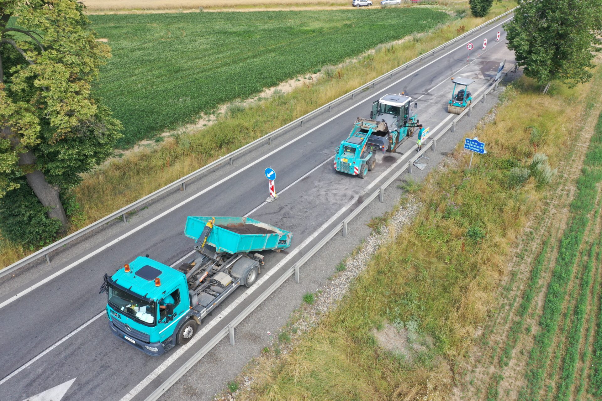 Zhotovitelem je společnost IMOS Brno a.s., která provádí práce za 12,45 mil. Kč. Dokončení akce a uvedení křižovatky u Zvěrkovic do plného provozu předpokládáme během září.