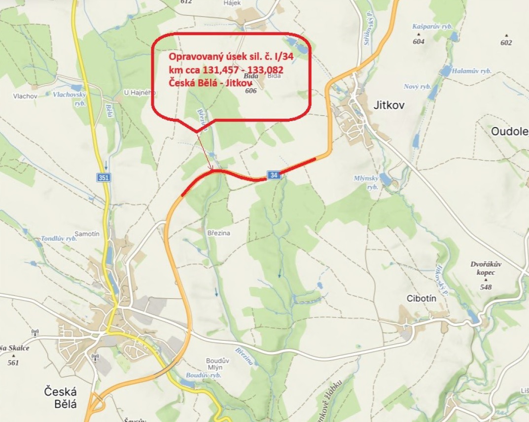 V pondělí 15. září zahajujeme opravu silnice I/34 mezi Českou Bělou a Jitkovem. Práce budou částečně omezovat provoz, naplánovány je máme na přibližně 2 týdny.