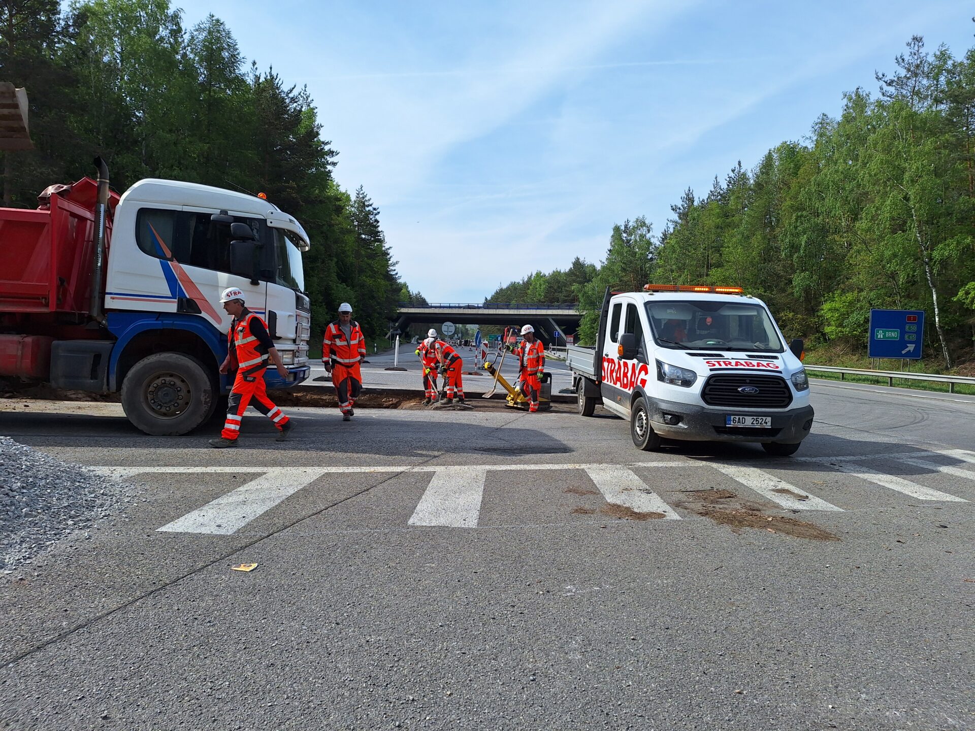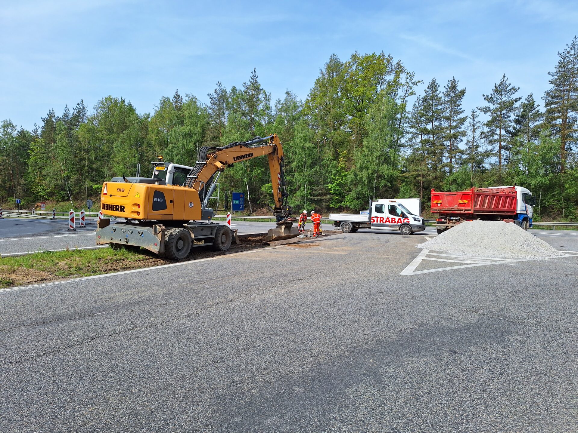 Demontáží středových svodidel a úpravami místa pro zařízení stavby dnes započala jedna z letošních nejnáročnějších stavebních operací na komunikacích ve správě Ředitelství silnic a dálnici v Kraji Vysočina. Zároveň je upravován středový dělící ostrůvek sjezdové a nájezdové větve v EXIT 112 tak, aby po něm mohla být vedena doprava. Chystá se kácení náletových dřevin v prostoru budoucí okružní křižovatky i přeložka telekomunikačních kabelů. V následujících měsících dozná celé místo významných změn, a to z důvodu zajištění větší plynulosti a bezpečnosti provozu.