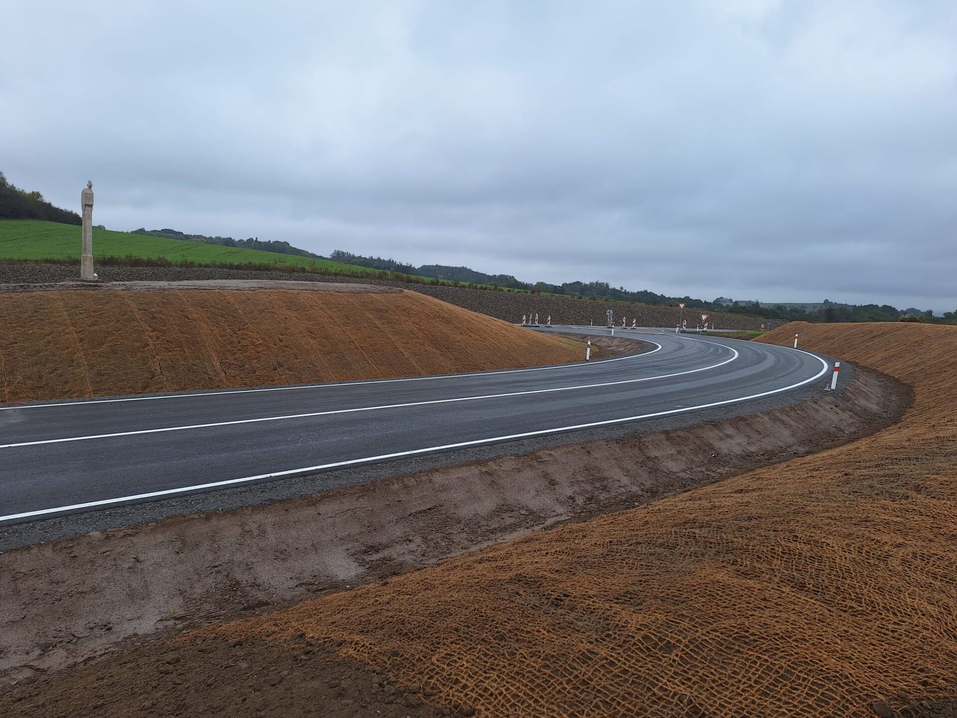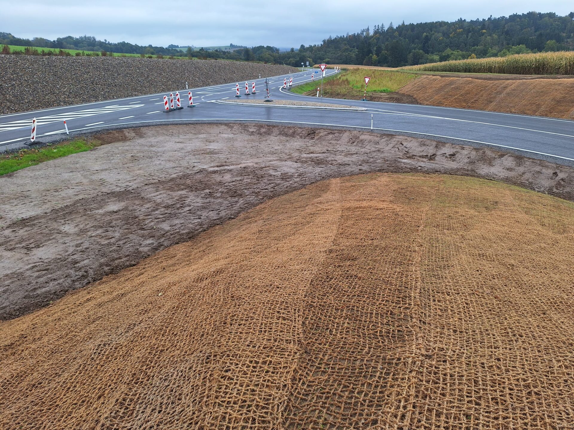 Stavební úpravou došlo k umístění křižovatky do zářezu hloubky až 4,5 m a narovnání hlavní trasy tak, aby se s vedlejší komunikací nestýkala v zatáčce. Rozšířením silničního tělesa bylo možné zřídit také jízdní pruh pro vozidla odbočující z hlavní trasy vlevo, do Dobré Vody. Zbudován byl rovněž 5 m široký asfaltový sjezd, který poslouží k přístupu na zemědělské pozemky vedle křižovatky. Původní provizorní komunikace délky 682 m, kterou bylo nutné vybudovat během úpravy hlavní trasy, kdy byl po ní veden veškerý provoz, byla rozebrána.
