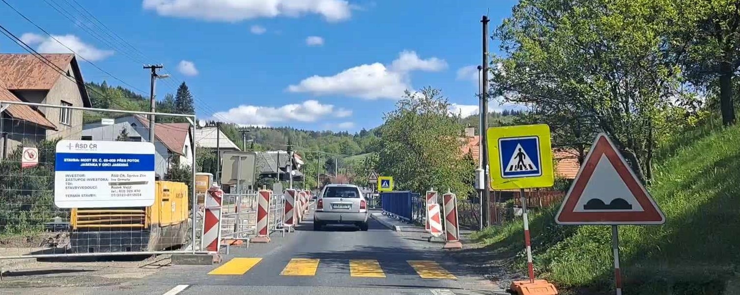 Pokračujeme v opravě 2. poloviny nosné konstrukce mostu na silnici I/69 v obci Jasenná. První půlku jsme již opravili v loňské stavební sezóně. Provoz je veden kyvadlově a řízen semafory. Dokončení prací plánujeme v polovině června. Děkujeme za trpělivost.