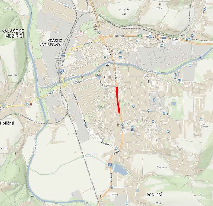 Druhou etapu oprav silnic I/35 a I/57 v centru Valašského Meziříčí zahájíme v pondělí 14. října. Přesuneme se do zhruba dvoukilometrového úseku silnice I/57, který začíná z před křižovatkou s ulicí Na Vyhlídce a končí u železničního přejezdu na Drážkách viz mapka níže.