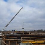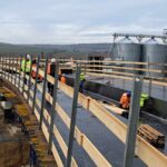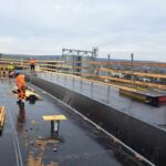 V zimních měsících na stavbě D55 Staré Město – Moravský Písek také pokračují práce na mostech, které jsou v různých fázích rozpracovanosti. „Celkově budujeme mezi Starým Městem a Moravským Pískem 9 mostů, z toho šest na dálnici a 3 nad dálnicí. Most u Moravského Písku máme již dokončený a řidiči už po něm jezdí v režimu předčasného užívání. Téměř hotový je také most u Kostelan, kde nám zbývá už jen dodělat dokončovací práce. Na mostu u Polešovic, který je založený právě na ražených prefabrikovaných pilotách, teď provádíme bednění nosné konstrukce a připravujeme se na její armování. Betonáž mostu plánujeme na konec února,“ popsal manažer oblasti Mosty Michal Hrutkai ze společnosti Skanska.