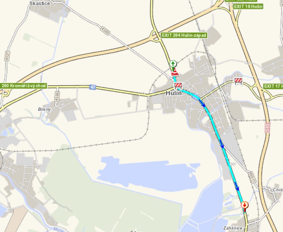 Obnovu vodorovného dopravního značení dnes provedeme na silnici I/47 v Kroměříži a na silnici I/55 v Hulíně. V obou úsecích jsou práce plánovány od 10:00 do 17:00. Oba směry budou vždy v provozu, počítejte však s možným zdržením.