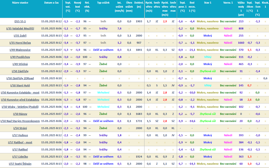 Dálnice a silnice. I. třídy jsou ve Zlínském kraji aktuálně sjízdné se zvýšenou opatrností. Povrch vozovek je po chemickém ošetření převážně mokrý, nasolený, místy se zbytky rozbředlého sněhu. POZOR zejména na komunikacích I. třídy na Valašsku, kde dnes může vznikat náledí. Jsme stále v terénu. Pohyb vozidel zimní údržby v reálném čase můžete sledovat zde: udrzba.rsd.cz