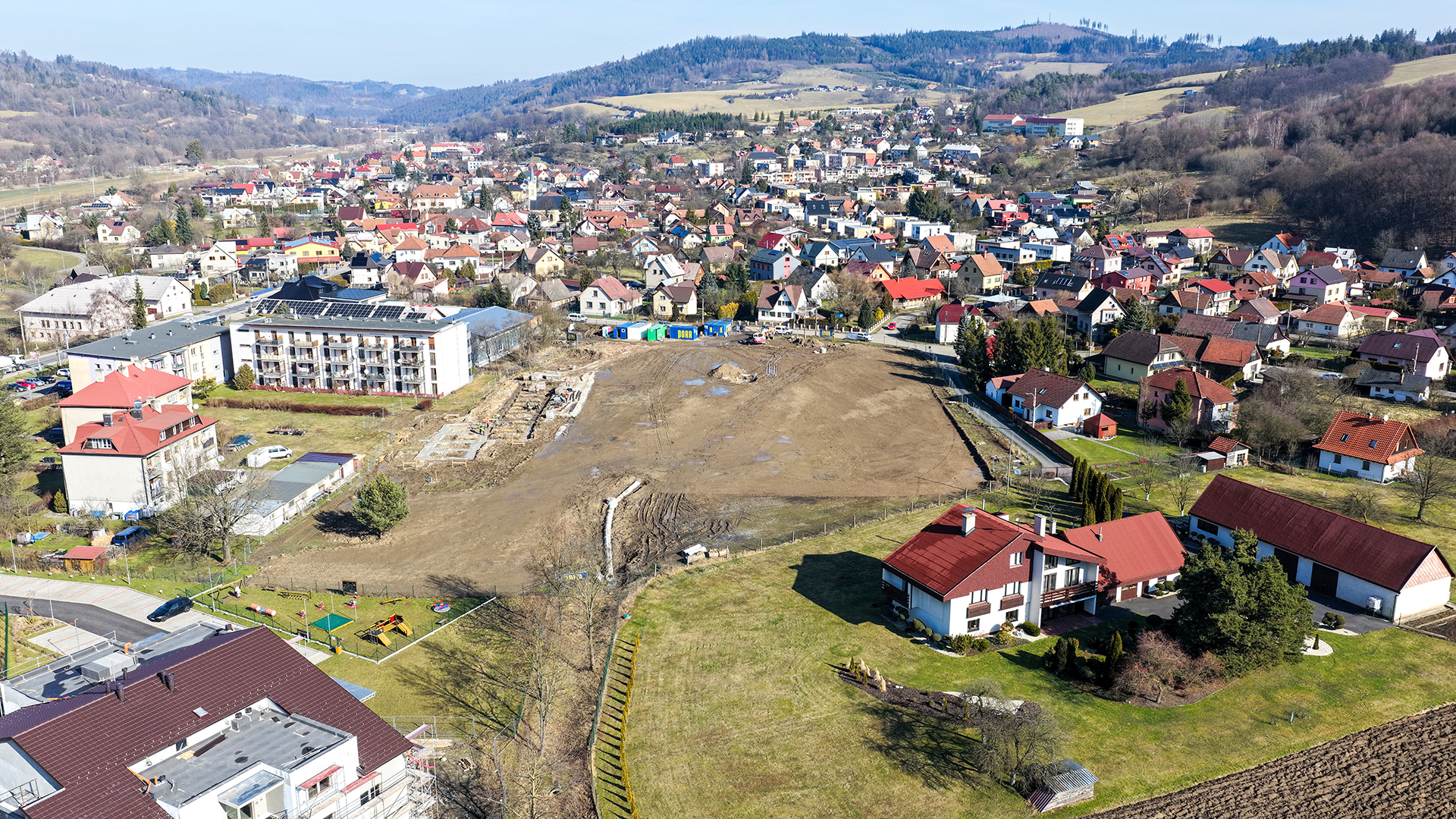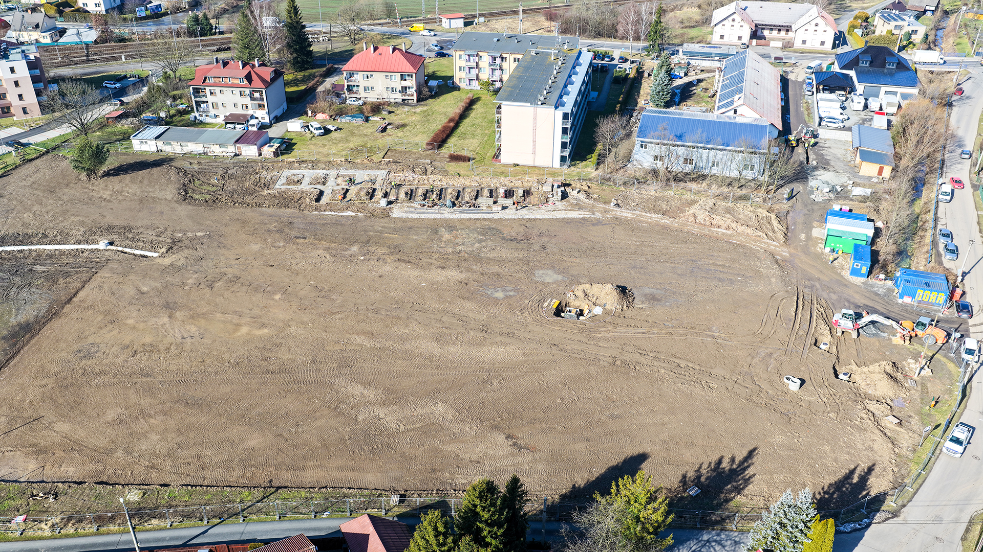 Součástí realizace je také přeložka fotbalového hřiště, které se nacházelo v trase budoucí komunikace. I tuto část projektu zajišťujeme tak, aby byla zachována sportovní infrastruktura v území.