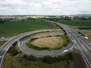 - 4 mostních objektů v celkové délce 244m (1 na dálnici, 2 nad dálnicí, 1 na větvích křižovatky)