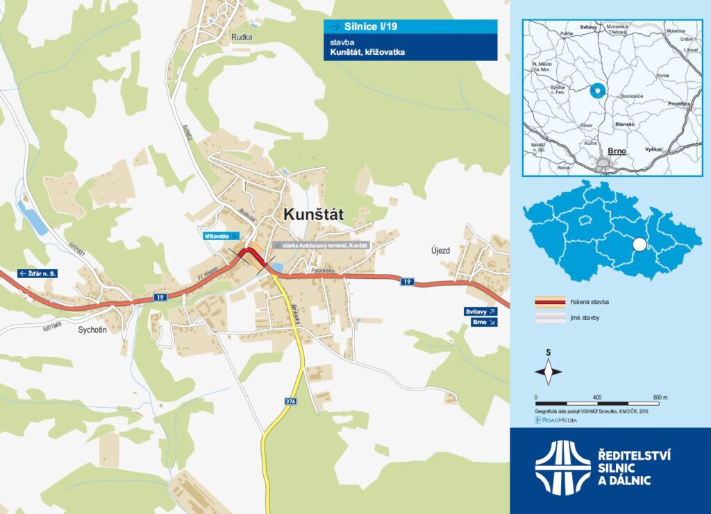 Zásadní úpravu křižovatky silnic I/19 a III/3652 v Kunštátu zahájíme v úterý 8. října. Provoz bude veden kyvadlově a řídit ho budou semafory či pracovníci s vysílačkami. Práce máme rozdělené na dvě etapy. Letošní první etapa potrvá 50 dnů a dokončíme ji v listopadu. V příštím roce na jaře stavbu opět zahájíme a finálně dokončíme za 80 dnů. Akce vyjde na 17,3 milionů korun bez DPH.
