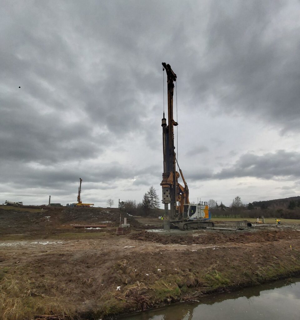 Na stavbě dálnice D49 v úseku Hulín – Fryšták v délce 17,3 km panuje i v zimních měsících čilý stavební ruch. Na mostech probíhají práce na založení, pilotách a odbourávání hlav pilot.