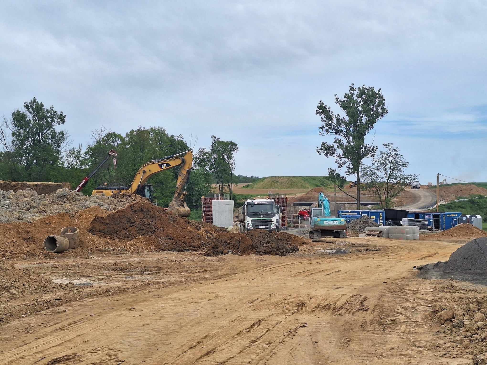 Na stavbě I/35 Lešná – Palačov aktuálně pracujeme na odtěžování zeminy ze zářezů a zřizujeme násypy zlepšenou zeminou. Pokračujeme v zakládání mostů a ve výstavbě spodních staveb mostů. Na části D48 budujeme napojovací větve u původní MÚK Palačov, na které nejpozději v červenci převedeme provoz.