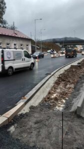 Nová okružní křižovatka na silnici I/69 ve vsetínské části Rokytnice je již plně průjezdná bez omezení. Semafory jsme odstranili. Jedná se o součást stavby „rampy Mostecké“. Nyní budujeme zárubní stěny ve svahu Žamboška, které jsou nosným prvkem pro sjízdnou rampu.