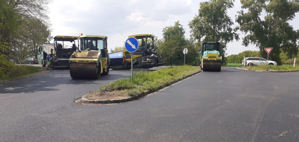 Oprava ramp na silnici I/ 50 u Buchlovic pokračuje dle plánu pokládkou asfaltových vrstev. První strana už je hotová. Pokud počasí bude přát, do konce týdne pokládku dokončíme. Následovat budou dokončovací práce a ošetření spár. Hotovo bude nejpozději 18. 5.