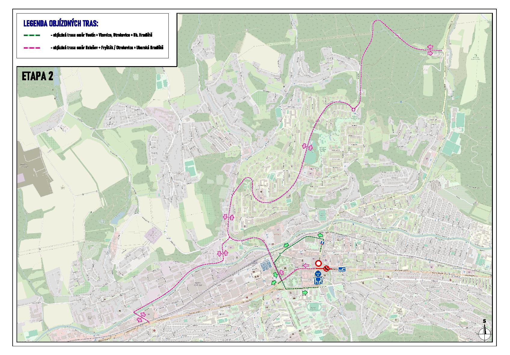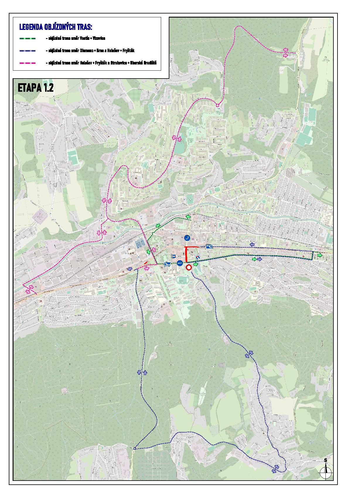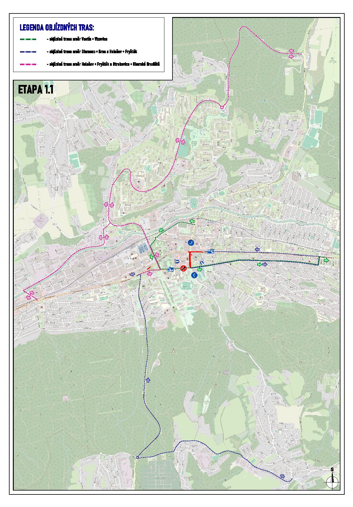 Během prvního týdne prací od 29. 6. do 4. 7. bude uzavřena ulice Osvoboditelů. Objízdná trasa povede přes hlavní křižovatku u nemocnice po třídě Tomáše Bati. Koncem této první etapy bude nutné na jeden den uzavřít také příjezd do křižovatky u kolektivního domu ve směru od Kudlova, to znamená nebude umožněno ani odbočení doprava na ulici Štefánikova (viz mapka etapa 1.2. v příloze).