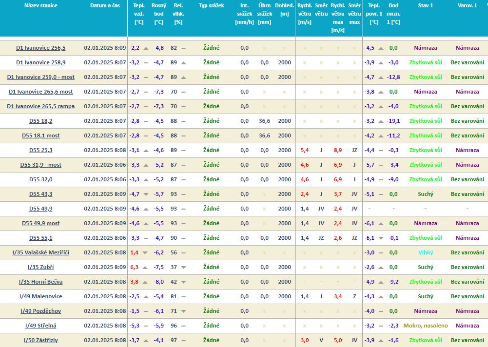 Dnes ráno se teploty pohybují pod bodem mrazu, proto hrozí namrzání vozovky a vznik náledí. S opatrností jeďte především na silnici I/49 u Pozděchova, I/69 na Sirákově a na dálničních mostech! Zimní údržba projíždí svěřené úseky a provádí pravidelný posyp. Vaše cesty usnadní návštěva webu dopravniinfo.cz
