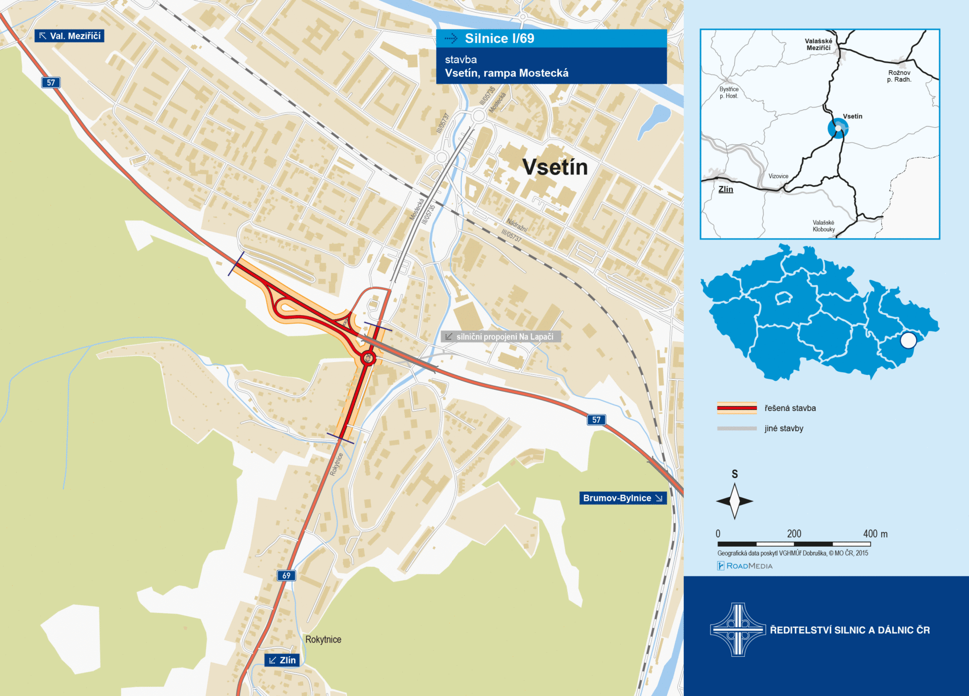 Vzhledem k postupu prací na stavbě „I/69 Vsetín, rampa Mostecká“ upozorňujeme na plánované změny ve vedení provozu. Od 18. 9. do listopadu bude provoz na silnici I/69 v místní části Rokytnice zredukován do jednoho jízdního pruhu a budou ho řídit semafory.