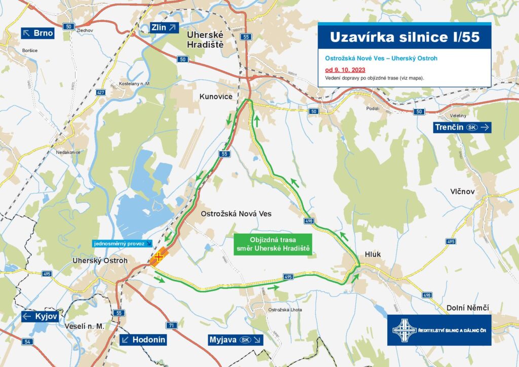 Upozorňujeme řidiče na plánovanou opravu silnice I/55 mezi Ostrožskou Novou Vsí a Uherským Ostrohem, kterou zahájíme v pondělí 9. října. Práce v úseku v délce 1,1 km budou rozděleny do čtyř etap.