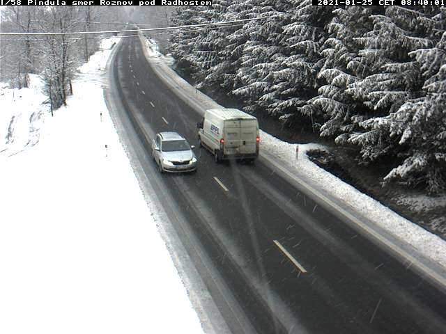 Dálnice a silnice I. tříd jsou ve Zlínském kraji aktuálně sjízdné se zvýšenou opatrností. Vozovky jsou převážně mokré po chemickém ošetření. Opatrnou jízdu doporučujeme ve vyšších polohách, např. na silnici I/35 Horní Bečva a I/57 Pindula, kde nyní hustě sněží.