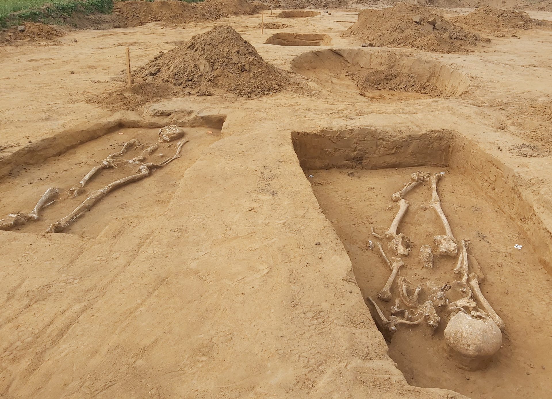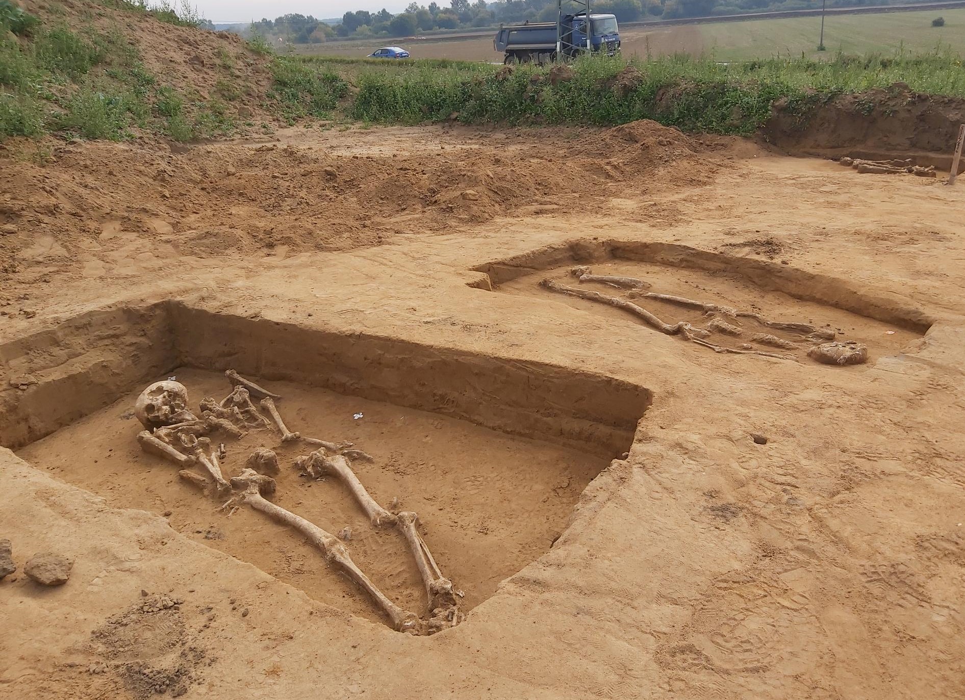 Na trase budoucí dálnice D55 mezi Starým Městem a Moravským Pískem (úsek D55 5508) v ještě stále pokračuje některých lokalitách úspěšný archeologický průzkum, který čítá tisíce nalezených objektů. Aktuálně archeologové hlásí nález 14 hrobů s kosterními pozůstatky a různými předměty typickými pro povelkomoravské období. „Ženské hroby obsahují vlasové ozdoby, stříbrné či postříbřené záušnice. Mužské obsahují většinou železný nůž, nebo drobné předměty denní potřeby. Některé z hrobů datujeme na základě nálezů mincí do první poloviny 11. století. Významným nálezem je také denár Štěpána Uherského. Datování pohřebiště jako celku bude záležitostí vyhodnocení dalších hrobů, které pravděpodobně budou obnaženy při dalších pracích v lokalitě,“ prozradil vedoucí záchranného archeologického výzkumu Miroslav Popelka z Ústavu archeologické památkové péče Brno.