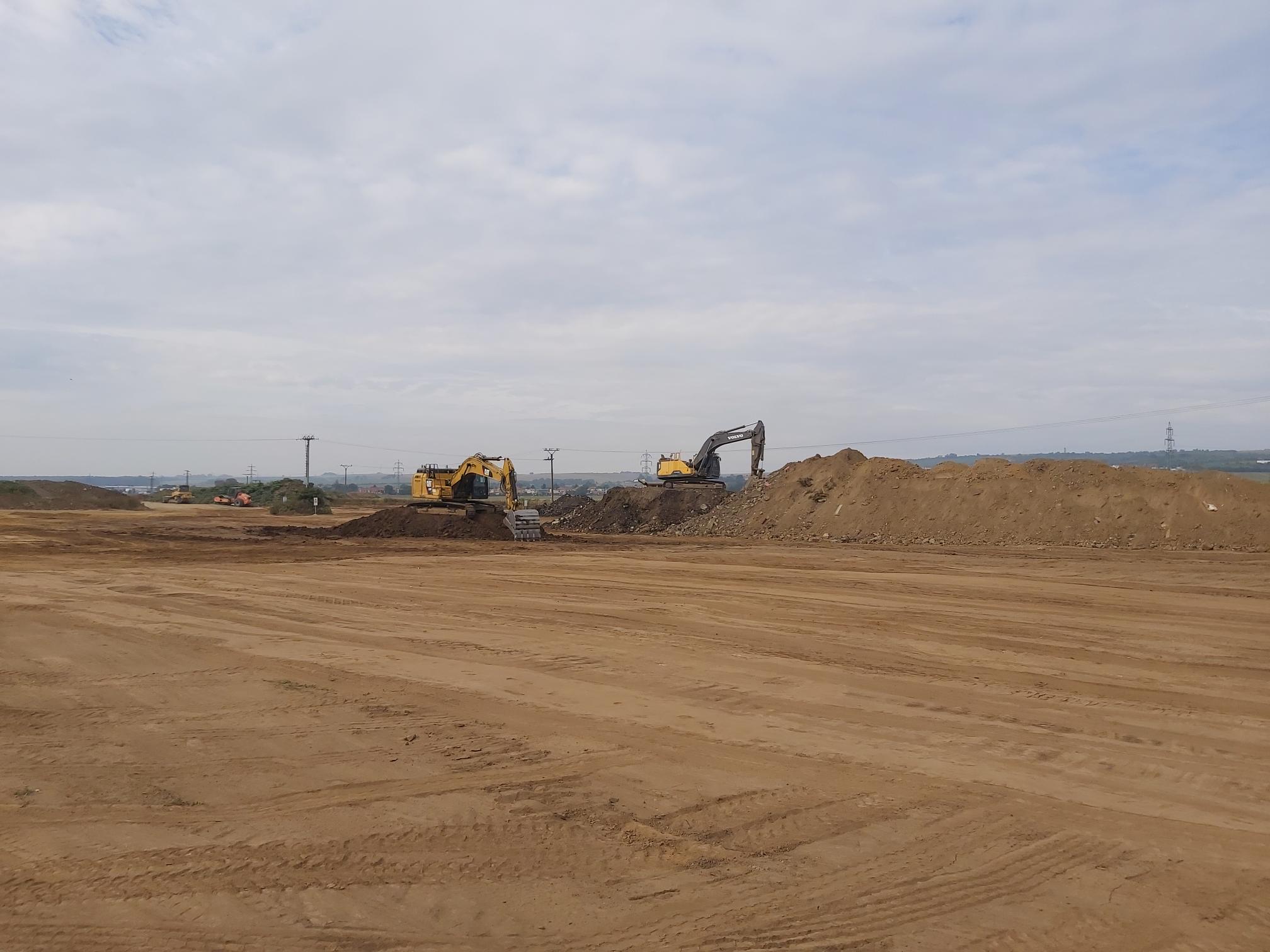 V budovaném 8,8 km úseku dálnice D55 (5508) Staré Město-Moravský Písek je v těchto dnech pořádně „živo“. Těžká technika se místy prolíná s jednoduchými nástroji archeologů, kteří hlásí nález 14 hrobů s kosterními pozůstatky a různými předměty. Pokračuje skrývka a odvoz ornice. Společně s loni zahájenou částí dálnice D55 mezi Babicemi a Starým Městem je nyní v realizaci souvislý 17 km úsek D55.
