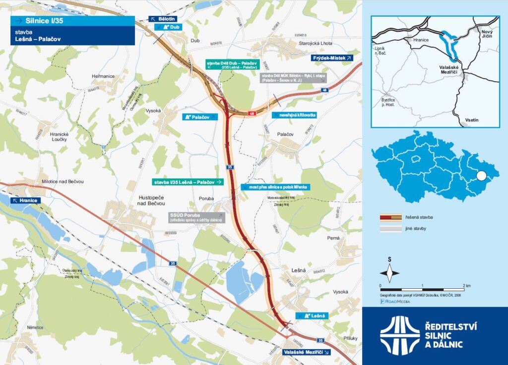 Jedná se o novostavbu více než pětikilometrové silnice I/35 mezi obcemi Lešná a Palačov a dále o rekonstrukci dálnice D48 Dub – Palačov a novou mimoúrovňovou křižovatku silnic D48 a I/35 – MÚK Palačov. Součástí stavby je vybudování celkem 16 mostů, 6 protihlukových stěn v délce přes 4 km a mimoúrovňové křižovatky MÚK Palačov. Vybudováním kvalitního, kapacitního dopravního připojení komunikace I/35 na dálnici D48 a páteřní dálniční tah D1 se vytvoří předpoklady pro další rozvoj valašského regionu.
