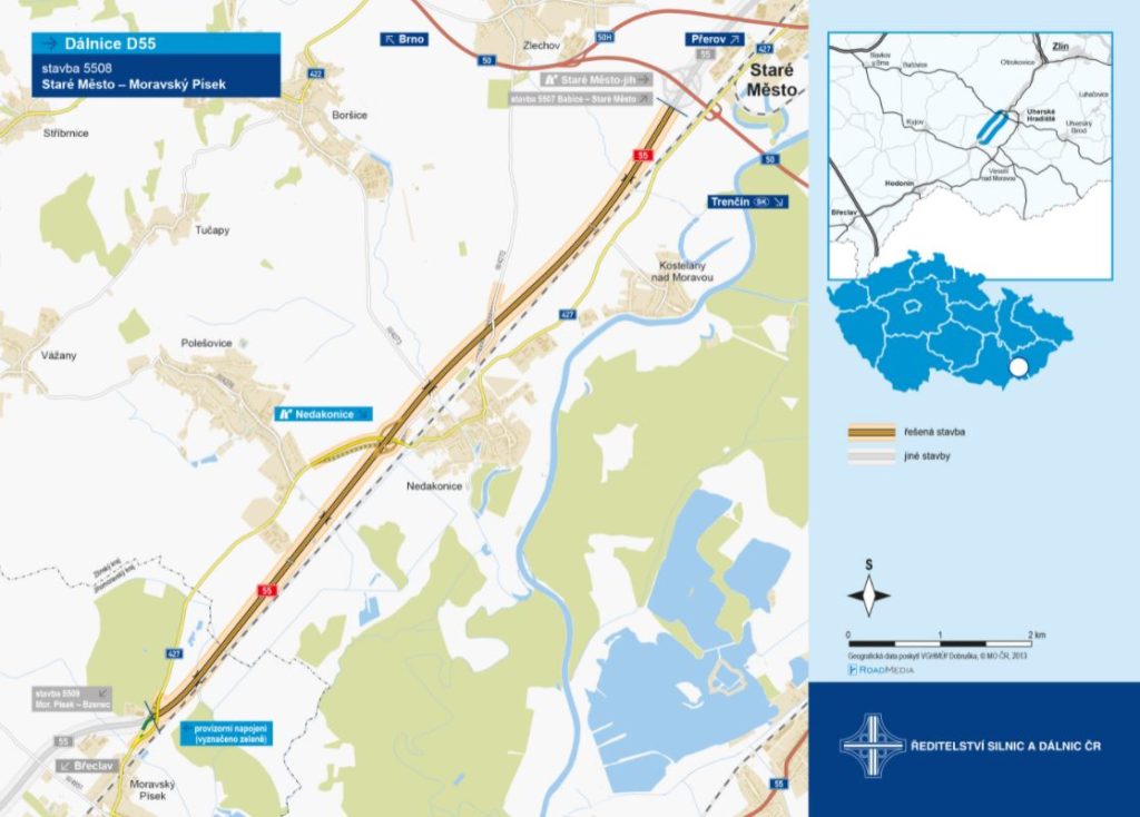 Dobrá zpráva! Podepsali jsme smlouvu se spol. Skanska na stavbu 8,8 km dálnice D55 ze Starého Města do Moravského Písku. Práce chceme zahájit už 2. srpna! V tomto úseku ještě stále probíhá úspěšný archeologický průzkum, 85% plochy už ale bude uvolněno pro stavbu dálnice.