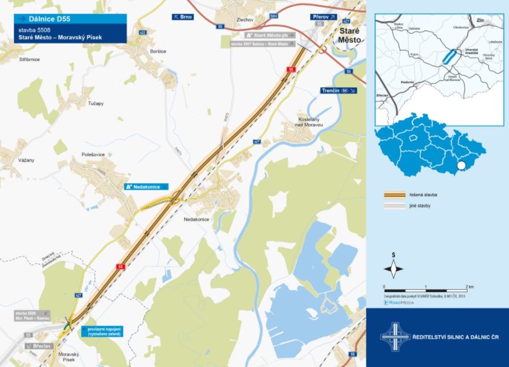 Stavbu dalšího úseku dálnice D55 5508 Staré Město – Moravský Písek v délce 8800 m se chystáme zahájit ještě letos. Aktuálně probíhá výběrové řízení na zhotovitele stavby. Již máme dokončený pyrotechnický průzkum. Předpoklad zprovoznění tohoto úseku je v roce 2024.