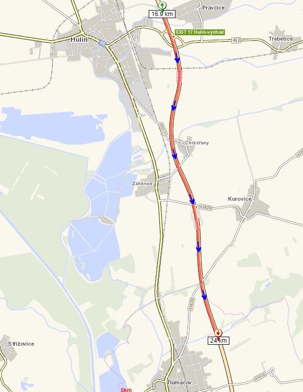 Údržbu povrchové kanalizace středového dělícího pásu provádíme dnes na dálnici D55 v km 16,9 – 24 ve směru Hulín – Otrokovice. Postupný pohyb údržby očekávejte v tomto 7 km dlouhém úseku v levém jízdním pruhu do 14:00. Pracovní místo je řádně značeno. Projedete vpravo.
