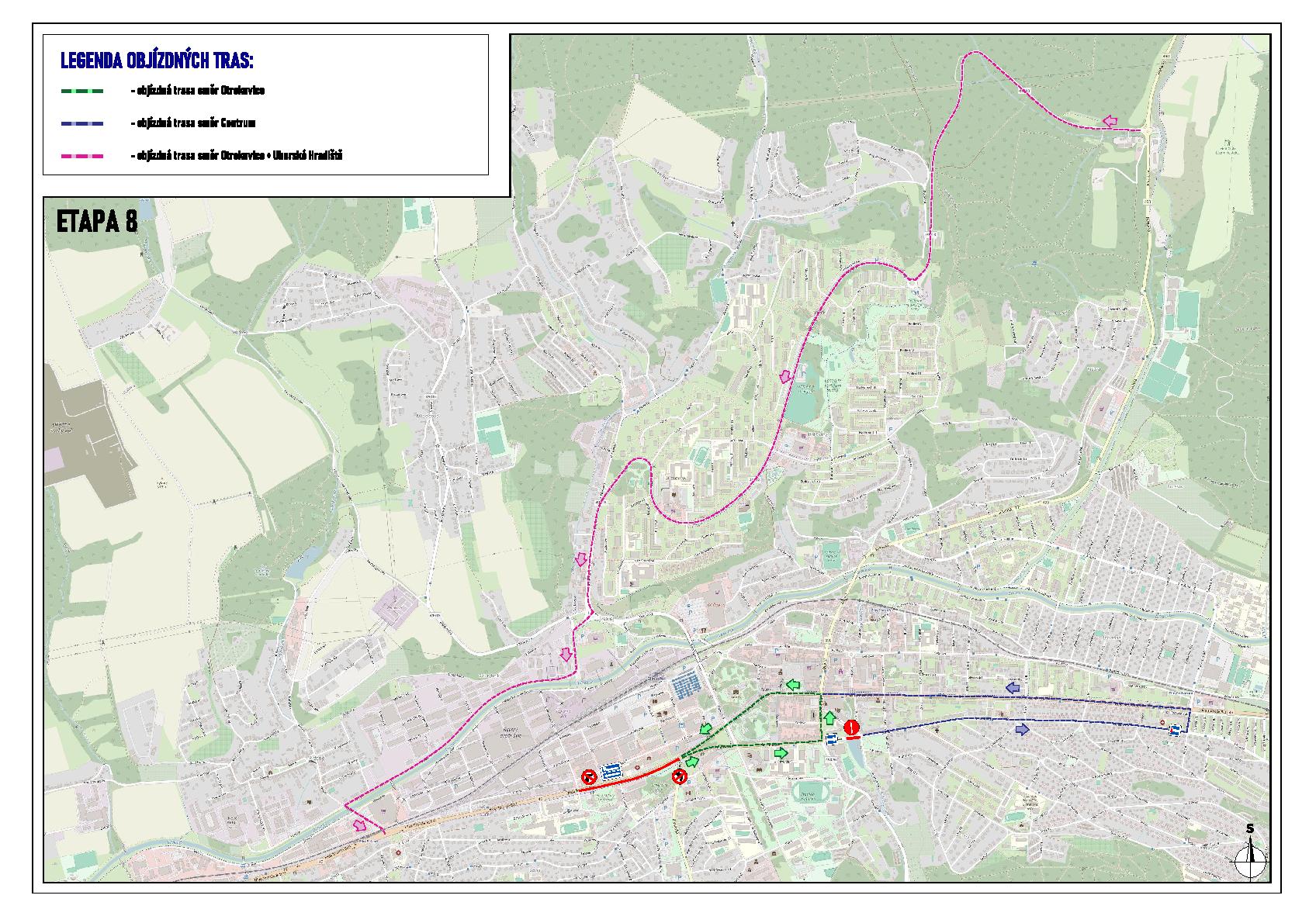 Upozorňujeme řidiče, že v závěrečné fázi opravy (viz mapka 8. etapa) nebude možné odbočit z Březnické ulice doleva ve směru na Otrokovice a také ze silnice I/49 doleva do ulice Antonínova. Objízdná trasa povede po ulicích Štefánikova, Osvoboditelů a po třídě Tomáše Bati.