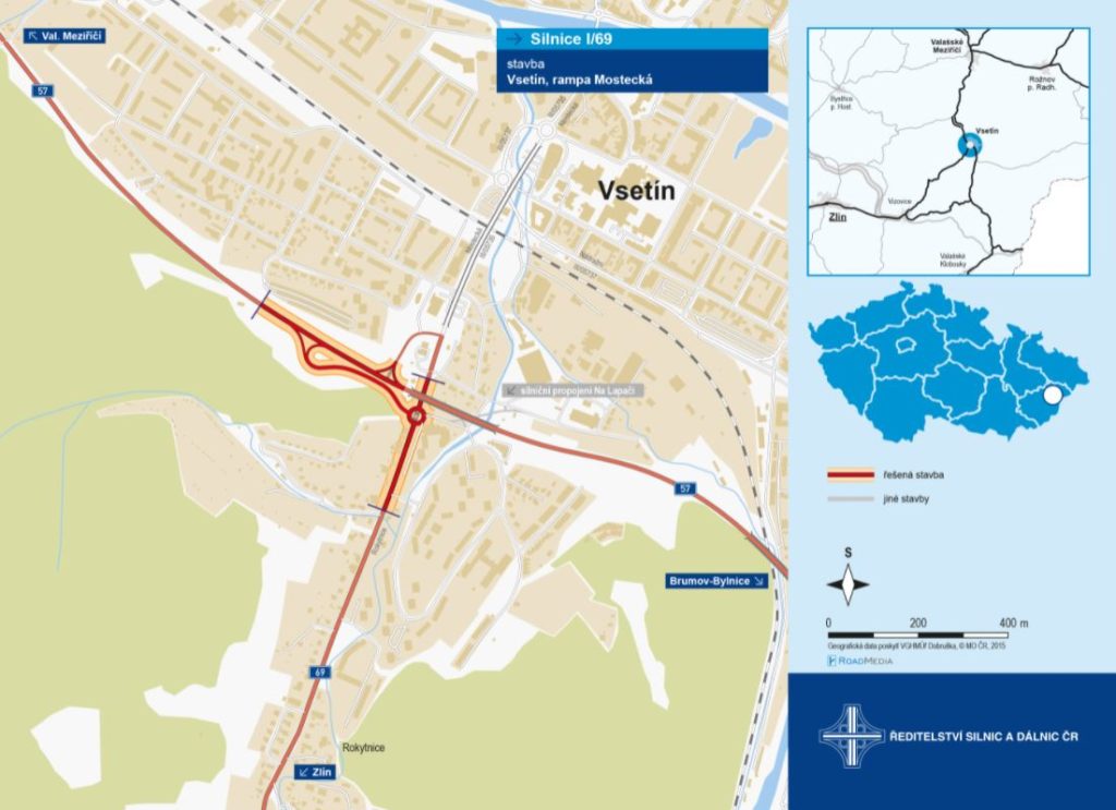 Aktuálně na stavbě “I/69 Vsetín, rampa Mostecká” probíhají přípravné práce, a to kácení stromů a mýcení keřů. Stavba řeší vybudování dvou nových křižovatkových větví frekventované křižovatky silnic I/57 a I/69 ve Vsetíně v místní části Rokytnice. Úpravou dojde ke zvýšení bezpečnosti silničního provozu. Jde o velmi nebezpečný úsek, kde často dochází k nehodám s tragickými následky.