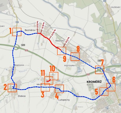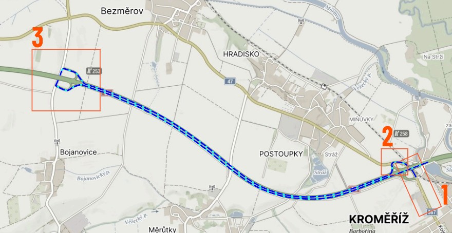 Po dokončení oprav mezi Bezměrovem a Hradiskem se přesuneme na kratší část silnice I/47 od Postoupek k rampám na dálnici D1. V této závěrečné etapě nebude možné najet na dálnici D1 v exitu 258 ve směru na Zlín. Objízdná trasa povede po D1 směrem na Brno s možností otočení v následujícím exitu 253, případně lze využít nájezd na D1 ve směru na Zlín v exitu 260.