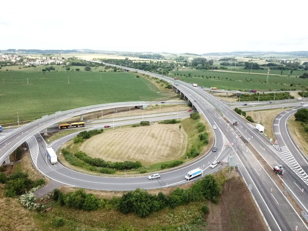Pokračuje dostavba 2. pol. dálnice D55 – JV obchvatu Otrokovic. Tisíce aut a kamionů již z centra Otrokovic zmizely, stavební činnost kolem města zdaleka neskončila. Zprovoznění dálnice D55 v polovičním profilu koncem června ulevilo přetíženým ulicím a řidičům už nyní šetří desítky minut, které ještě před pár týdny často prostávaly v kolonách na kvítkovické světelné křižovatce. Na dálnici funguje zatím provoz v režimu 1+1. Projíždějící řidiči mohli zaregistrovat např. betonáž opěrné zdi na konci úseku. Dále probíhala instalace panelů dalších částí protihlukových stěn, a to třeba na větvích mimoúrovňové křižovatky (MÚK) Napajedla. Uzavírka silnice I/55 započatá ihned se spuštěním provozu na nový úsek D55 umožnila zahájení dostavby této MÚK, kde je nutné vybudovat okružní křižovatku a z ní vedoucí nájezd na D55.